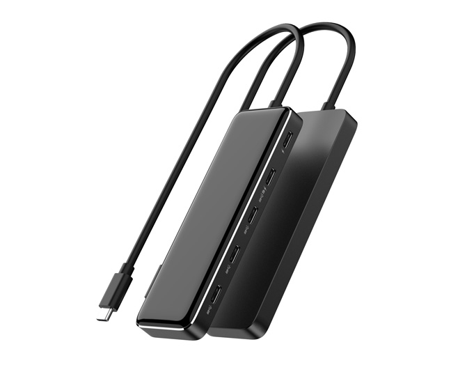 这是一款下行端口带有全功能USB-C的简单5 in 1 hub,这个全功能端口可以满足带全功能USB-C接口的显示器进行视频扩展,可以支持最大4K/60Hz的分辨率和刷新率,它也是数据端口,可以支持10Gbps的带宽传输。1个USB-C端口,不但支持10Gbps传输带宽,还支持BC1.2给外接电子设备充电。另外的2个USB-C端口支持10Gbps传输带宽,数据传输更快速,大大提升工作效率,满足连接需求。USB-C PD端口支持最大PD100W功率输入,实行动态分配,即下行端口无任何设备接入时,扣除芯片工作功耗,剩余可以全部给host端供电;如果下行端口有设备接入,则按照实际功耗扣除后,剩余可以全部给host端供电。